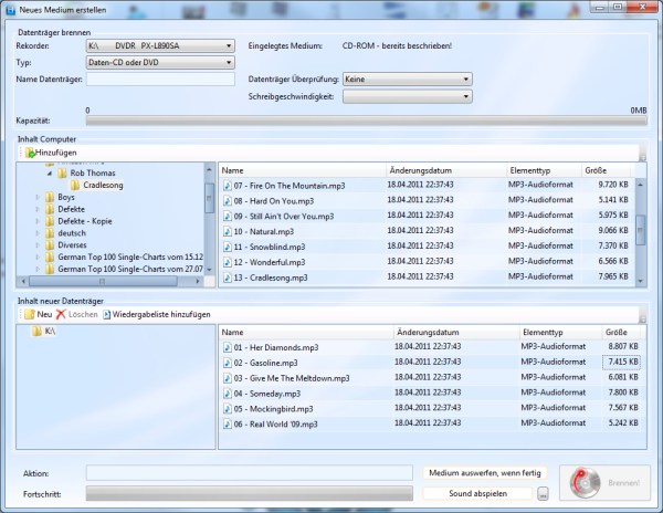 eine CD kann mit wenigen Klicks gebrannt werden. Es wird nun eine